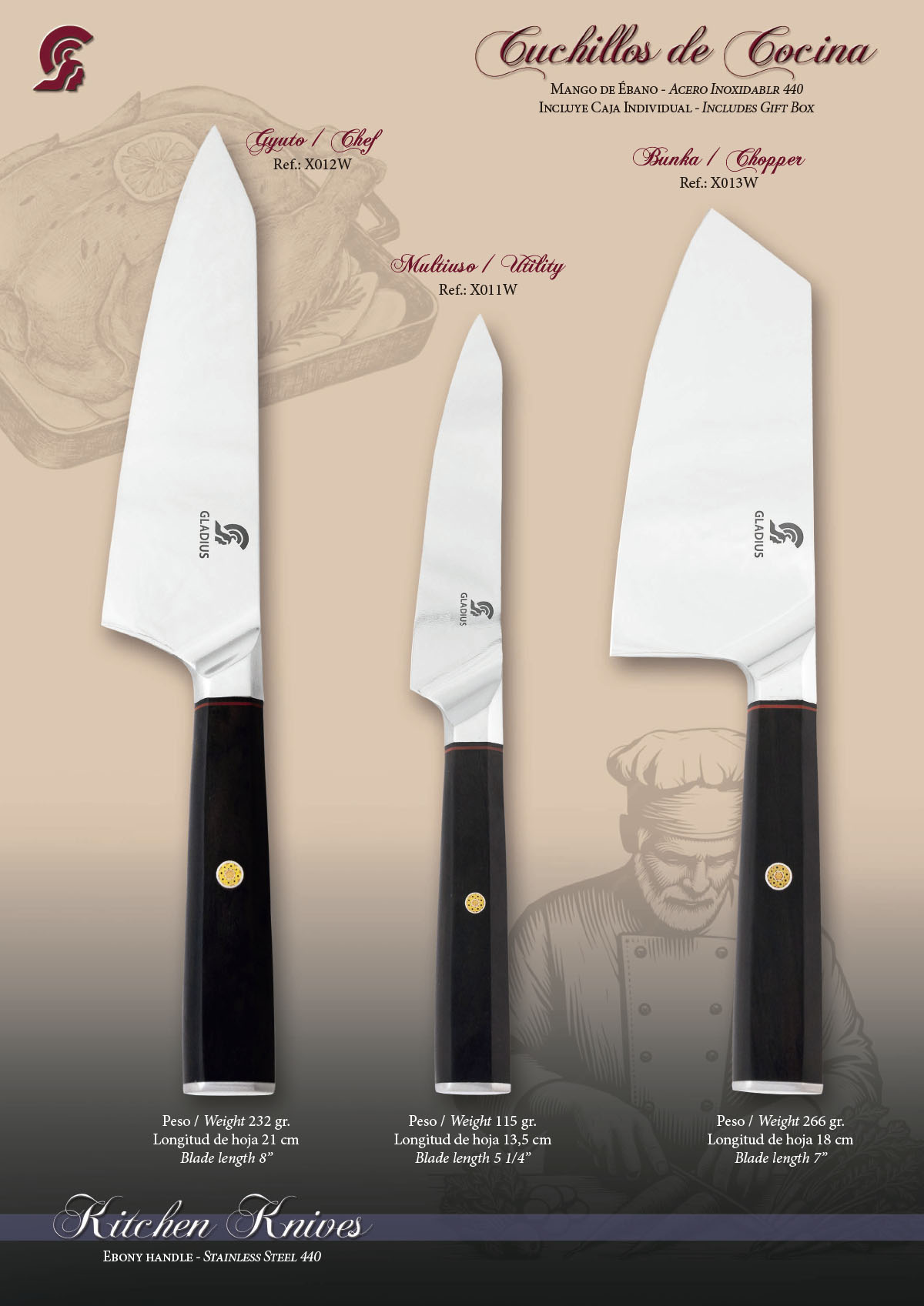 Art Gladius offers you a new collection of high-quality kitchen knives. Forged with 440 steel, with a flawless edge, providing precise and effortless cutting.